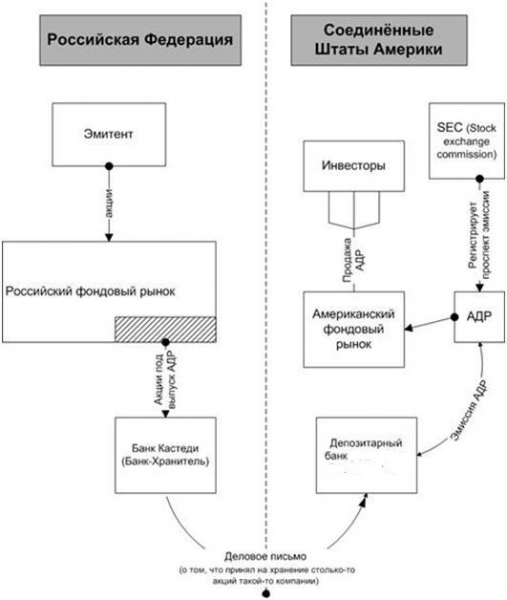 Схематически процесс выпуска депозитарной расписки можно представить следующим образом: