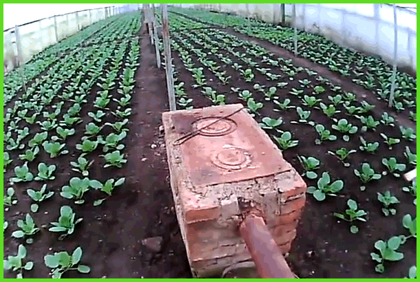 - Если дымоотвод делается прямо под стеллажами, чтобы лучше обогревать культуры, тогда нельзя делать его полностью горизонтальным. Делайте его с завышение более 1,5 промилле к выходу. Если сделать 1,5 см уклона для каждого погонного метра, тогда у вашей системы обогрева будет отличная тяга.